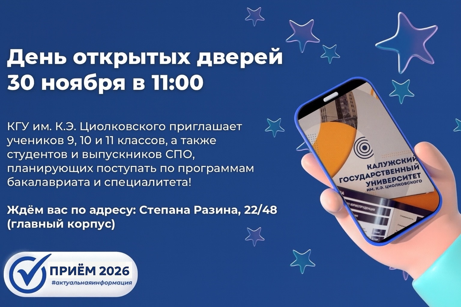КГУ им. К.Э. Циолковского приглашает вас на День открытых дверей для поступающих по программам бакалавриата и специалитета!