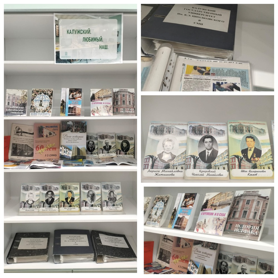Абонемент научной литературы (ул. Ст. Разина, 22/48, ауд.208) приглашает Вас познакомиться с выставкой изданий "Калужский, любимый, наш", на которой представлены эксклюзивные материалы из фондов Научной библиотеки.