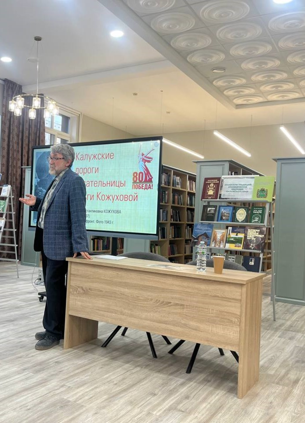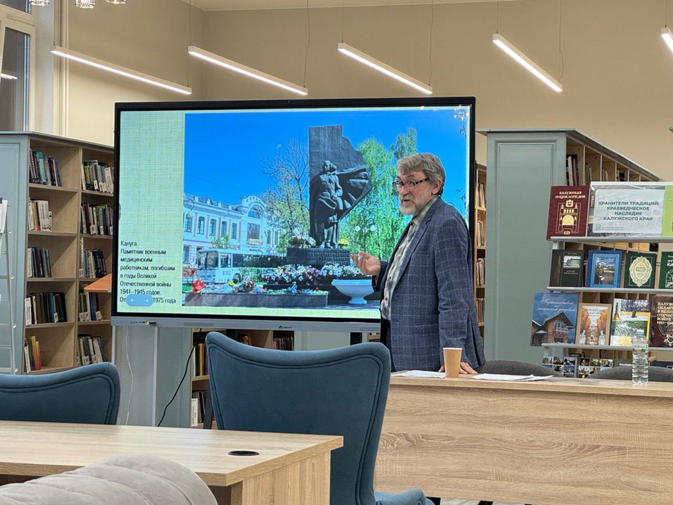 Литературовед, член рабочей группы по сохранению исторической памяти при Губернаторе Калужской области Виктор Боченков рассказал присутствующим об Ольге Кожуховой -советском прозаике, поэтессе, лауреате Государственной премии РСФСР, участнице Великой Отечественной. Начало её боевого пути связано с Калужской землёй, в частности с Износковским районом.