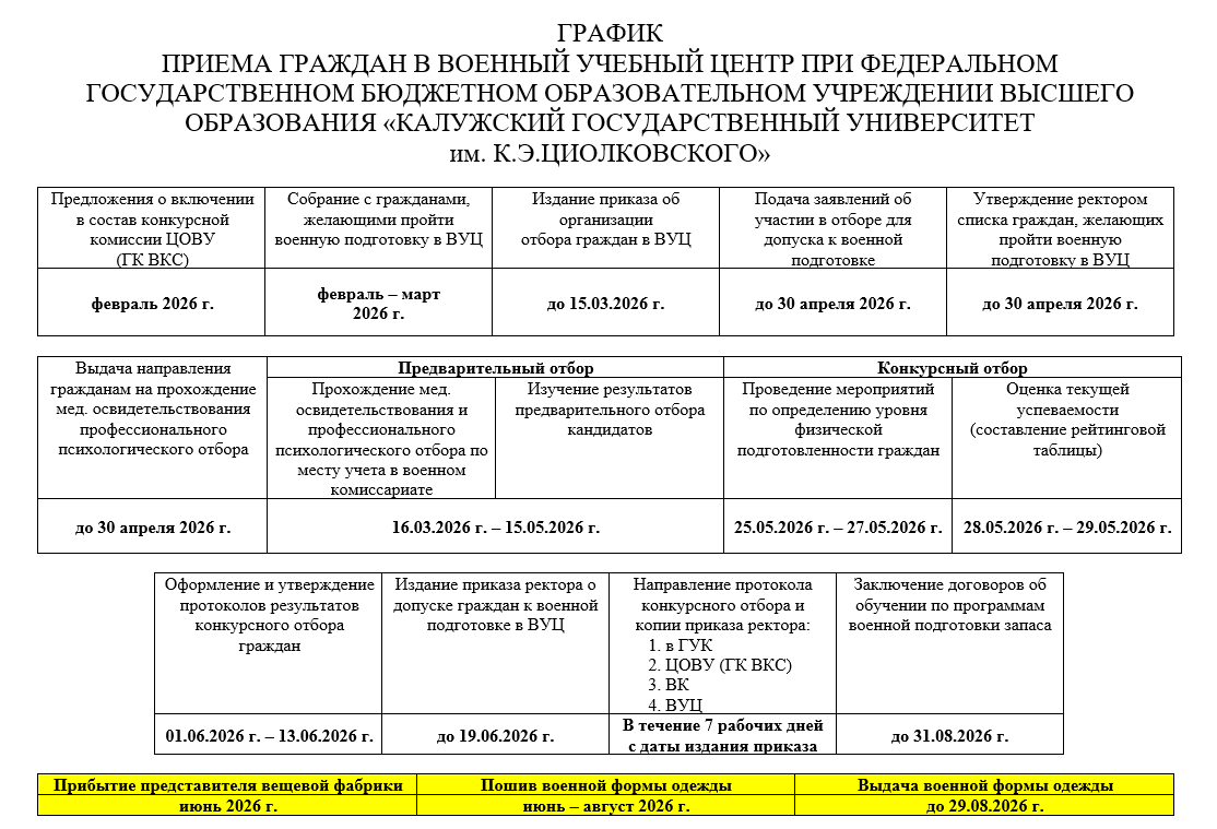 График приёма граждан в Военный учебный центр